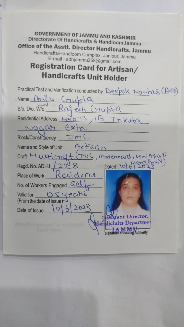 Driven by a desire to preserve and promote the artisanal skills of the local community, Anju embarked on a transformative journey. In a bold move reflective of her entrepreneurial spirit, she founded Anju Artisans, a platform dedicated to showcasing the exquisite craftsmanship of artisans from Jammu and Kashmir.